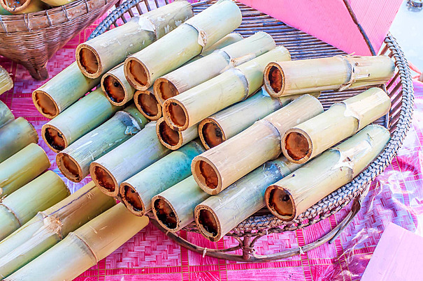 | ส่วนผสมวัตถุดิบ 1. ข้าวเหนียวขาว 2 ถ้วยตวง 2. กะทิคั้นสด 1 ถ้วยตวง 3. เกลือป่น 1 ช้อนชา 4. ถั่วดำต้มสุก ½ ถ้วยตวง 5. ใบเตย 15 ใบ 6. น้ำตาลทราย 1 ถ้วยตวง 7. กาบมะพร้าว 3 กาบ 8. กระบอกไม้ไผ่ 5 กระบอก |